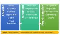 La Géomatique consiste à proposer et appliquer des méthodes et des techniques en collecte, traitement, analyse, représentation et diffusion de l’Information spatiale. L’information géographique, qui est par nature transversale et pluridisciplinaire, est au cœur du métier de géomaticien (professionnel du SIG). Celle-ci, intégrée dans des chaînes logicielles, sert de matière à de puissants outils d’analyse géo-spatiale et diachronique, d’aide à la réflexion scientifique et de communication. L’outil principal est le logiciel SIG, logiciel capable de gérer toute forme d'information graphique et attributaire, géoréférencée (ayant des coordonnées mondiales, nationales ou dans un plan 2D/3D quelconque…). Il permet de : Interroger, Saisir et mettre à jour, Analyser, Représenter, restituer (2D, 3D), Diffuser (papier, numérique, web).